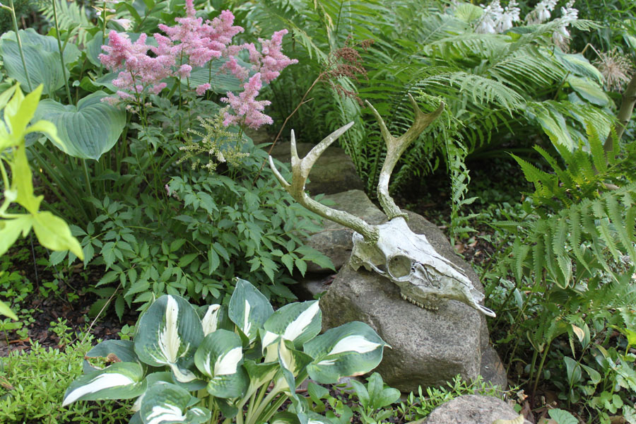 The gardens contain hundreds of hostas and daylilies as well as various irises, lilium, arisaema, specimen trees, spring ephemerals and many other bulbs and perennials.