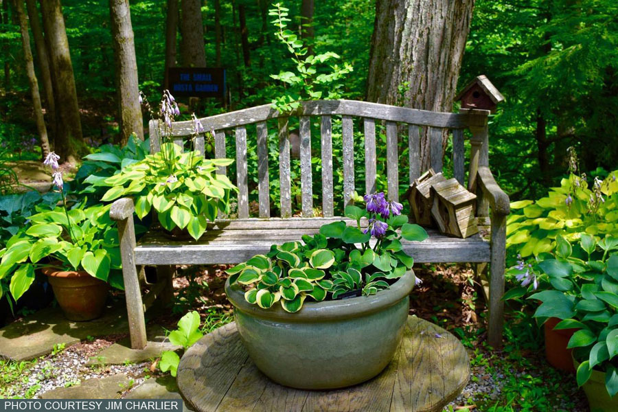 Mike Shadrack and Kathy Guest began building gardens on this wonderful piece of property in Western New York in 2005, shortly after they married. Kathy had gardened nearby for over 25 years and her passions included collections of iris, daylilies and hundreds of other perennials and bulbs. Mike, who is from London, England, was a hosta grower, collector and hybridizer. His love of shade plants complemented Kathy's eclectic gardens.